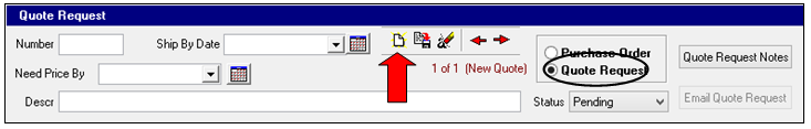 If the Quote Request window says “New Quote”, you are ready to begin dragging materials over to the quote request window pane. If it doesn’t say “New Quote”, click the New Quote Request button