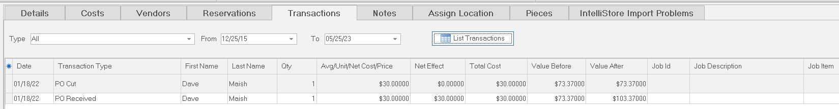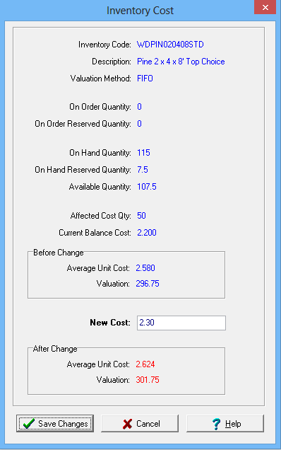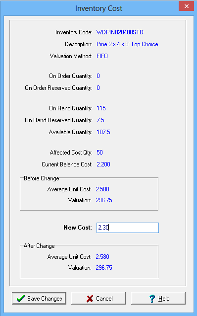 4. ShopPAK automatically updates the database and the affected inventory item pieces with your choice.