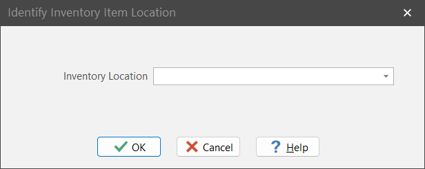 2. Click the “Assign To Location” button. This displays the “Identify Inventory Item Location” dialog box.