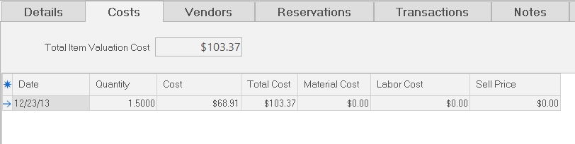 There’s too much inventory related information to fit neatly on one panel, so ShopPAK organizes inventory information into tabs that run along the bottom of the Inventory Form.