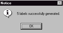 3. ShopPAK generates labels and stores them in the database. It displays an information box with the number of labels it generated.