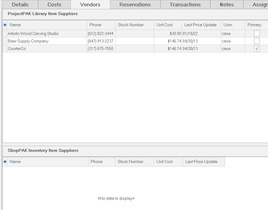 3. ShopPAK automatically updates the database and the inventory item with your choice.