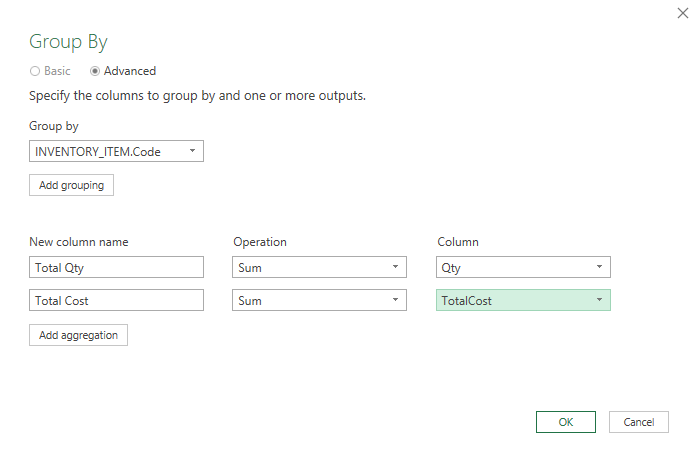 After clicking OK the grid is now updated with your aggregate functions
