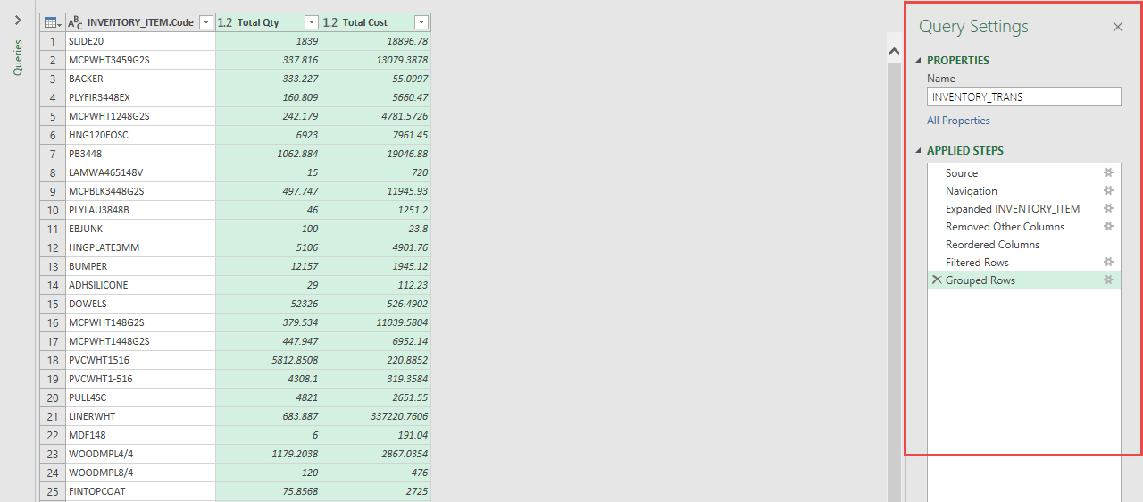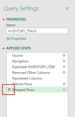 Every step you have done to create/edit your query has been recorded in the far right-hand panel labeled ‘Query Settings. Any step can be deleted or edited as desired.