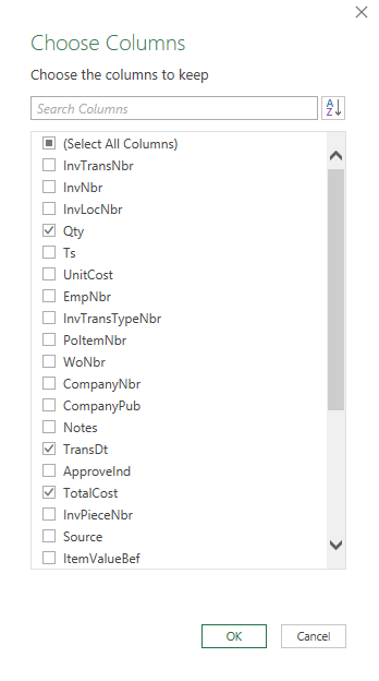 And then choose the columns
