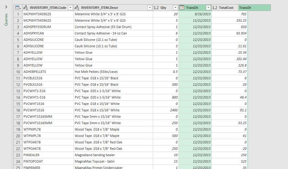 Listed first are all columns associated with the current table you selected when creating the query. To the left of the column title you will see a symbol that represents what type of data the column represents – integer, string, decimal number, date, etc.