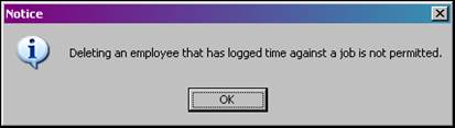 Terminated employees should be marked as ‘Inactive’. ShopPAK will not allow an employee to be deleted if they have accrued time against jobs. The employee wage information remains relevant in job costing even if they are not actively accruing additional time.
