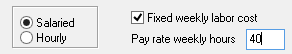 Since salaried employees are paid a fixed salary regardless of the number of hours worked, ShopPAK can adjust labor actuals transactions so they don't skew labor costs. If you want the employee to be included in the weekly time adjustment utility, place a check into the checkbox. Also, enter the number of weekly hours that correspond with the employee's hourly direct cost.