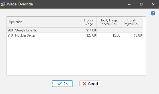 NOTE: A prevailing wage override (defined on the Jobs tab) takes precedence over an employee wage override, should both overrides be present for an employee and the same operation.