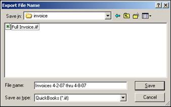 7. ShopPAK checks to make sure all necessary export information is present. If not, it displays an error message and terminates the export request. If all necessary information is present, it displays an “Export File Name” dialog box.
