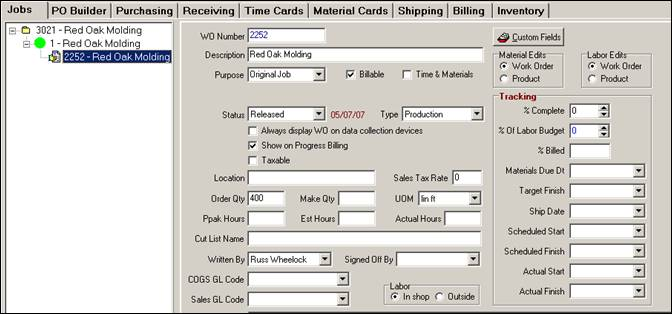 1. Create a Job, Job Item, and Work Order for the internal job of producing a Finished Product or sub-assembly. Both sub-assemblies and completed products must start with an internal fabrication work order. This is how we capture costs associated with producing the finished goods.