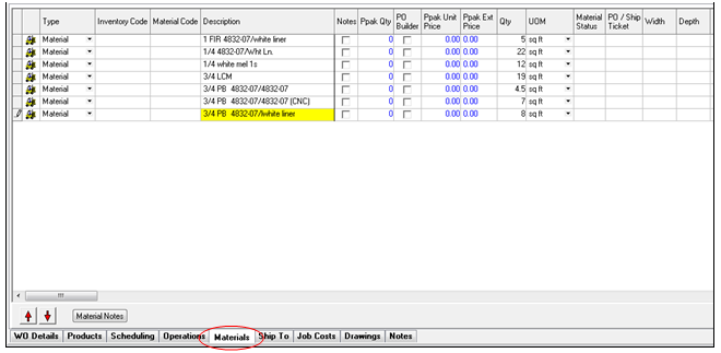 To import material into a work order, select the target work order from the Jobs tree and click the Materials sub-tab.