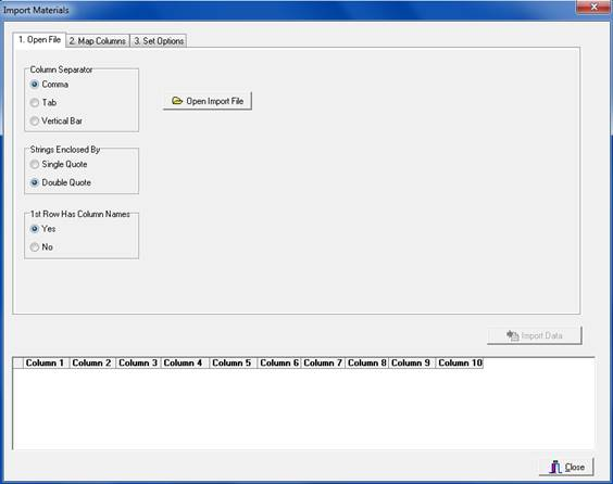 2) The import file may contain parts, as opposed to, distinct materials. Parts need to be aggregated together into distinct materials, before importing. ShopPAK provides a number of conversion formulas to automate the process.