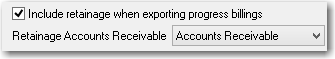 Check "Include retainage when exporting progress billings" if you want to send QuickBooks two invoice transactions: one transaction for the invoice amount that you anticipate receiving from your customer (this amount would not include held retainage that period), and two, another invoice for the amount of held retainage that period.