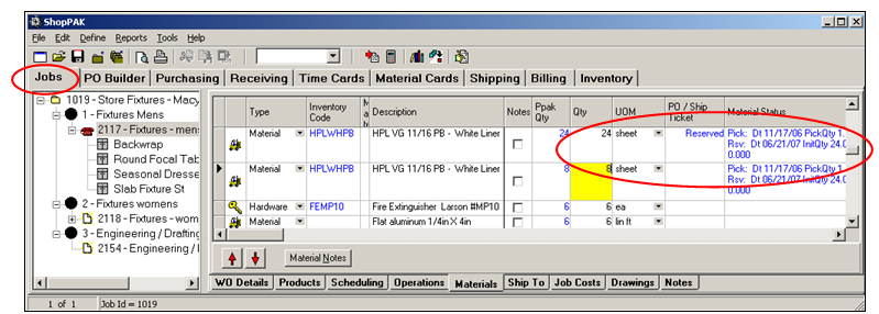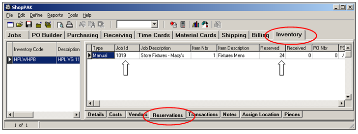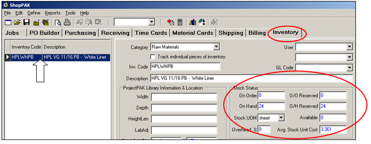 Just as ShopPAK keeps the “Jobs” tab updated with purchasing and reservation information, it keeps the “Inventory” tab updated as well.