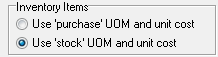 Inventory items can have different ‘purchasing’ and ‘stock’ unit of measures and unit costs. Tell ShopPAK which UOM/Cost to use as default when calculating extended cost of a newly added material that is based on a ShopPAK inventory item.