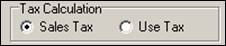 Placing a check in the ‘New items taxable’ checkbox turns on the ‘Tax Calculation’ control that documents if you are calculating sales tax or use tax.