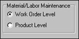 Select the level that you normally maintain material and labor at. Most ShopPAK users work at the work order level since it usually saves time. But if you need to make specific material and/or labor changes to a particular product, you should consider working at the product level.