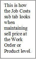 The third sub tab, Job Costs, summarizes the Job Item’s ProjectPAK estimated and ShopPAK actual values for: