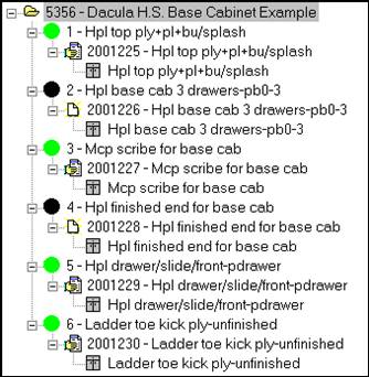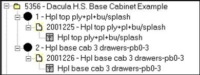 At the top of the tree is the Job -- 5356 - Dacula H.S. Base Cabinet Example. The Job consists of two Job Items: