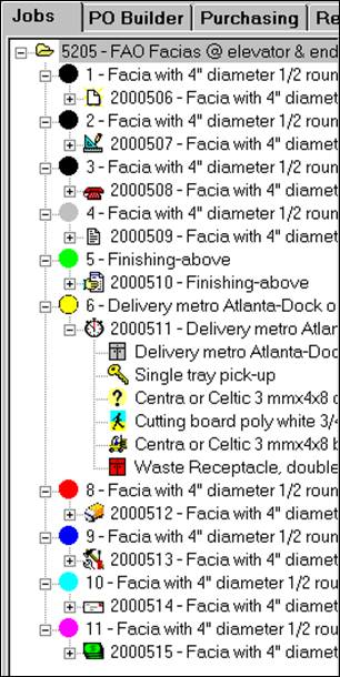 Similarly, Product objects have icons that identify product type, if they’ve been built, and shipping status. In the image below, you can tell a lot about Job status simply by looking at the icons in the expanded Job tree.