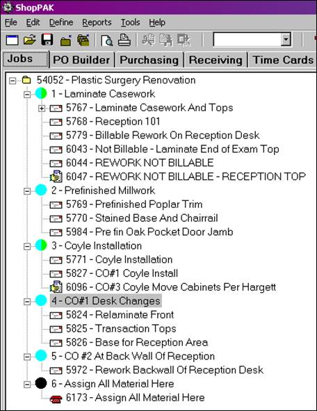 Note: A legend of Job Tree icons and descriptions are available in ShopPAK under the Jobs popup menu. Right mouse click the job tree and select “Job Tree Icon Descriptions” from the popup menu.