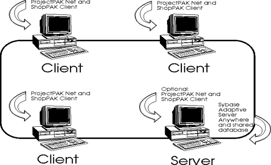 ShopPAK is tightly integrated with ProjectPAK. The shared ProjectPAK / ShopPAK database is installed on one PC or Server, and any number of client PCs that have ProjectPAK and/or ShopPAK client software are able to concurrently access and update information in the shared database.