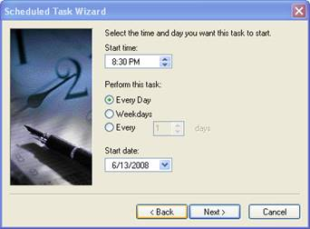 Specify a time that you want this task to run. Choose a time that is 45 minutes before your normal system backup is scheduled to run.