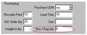 “Box/Bag Count” will allow you to include how many units are within a box or container. This information is available for Inventory Items on the Inventory ‘Details’ sub tab when generating labels from the Inventory tab.
