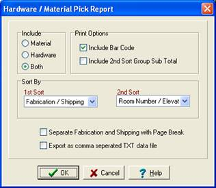 Hardware / Material Pick List