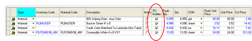 PO Builder Material Status