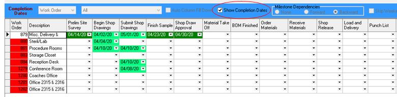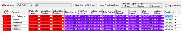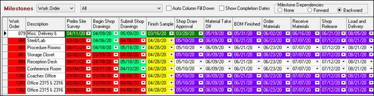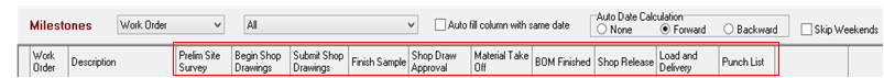 If your job is small, it may be that for a given milestone, all Job Items or Work Orders get the same target date. To speed up data entry, you can use the "Auto Fill Column With Same Date" checkbox.