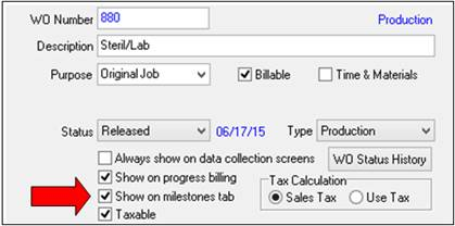 If you track milestones at the work order level, and not all work orders need to be tracked, you can exclude one or more work orders from the milestone grid. This is done on the Work Order Details screen. There's a checkbox called "Show on milestones tab". If you track milestones for the work order, make sure the check box is checked. Else, leave it blank.