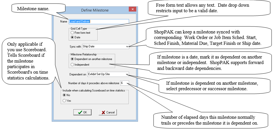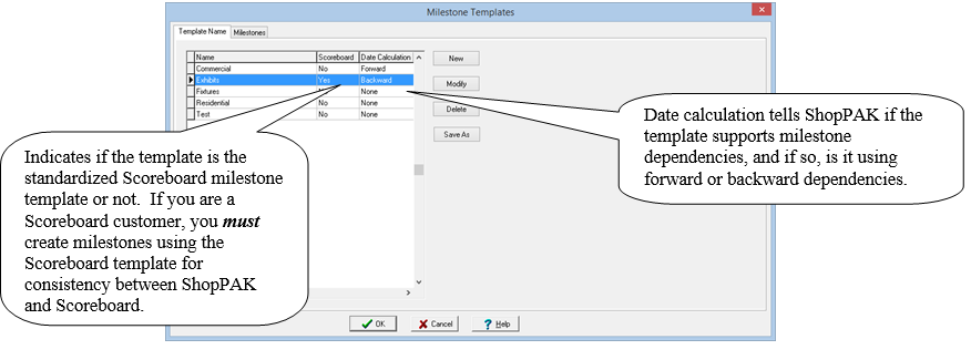 TIP: If you use Scoreboard, you shouldn't change milestones in any way from how they are defined in the Milestone Template marked as driving Scoreboard. It is imperative to maintain consistency across all milestones so ShopPAK and Scoreboard are in sync and work properly.