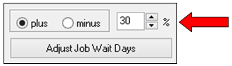 For example, if you think that this particular job item / work order is going to take 30% longer than average (the average being already defined by the milestone template wait days), then you'd click the "plus" radio button and enter 30 into the percent control. Then click à Adjust Job Wait Days button. ShopPAK re-calculates all the Job Item / Work Order Wait days accordingly.