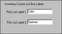 The Inventory Form has 2 user-defined pick boxes that you can create. If you decide to set up a user-defined pick box, identify the label name of the pick box here.