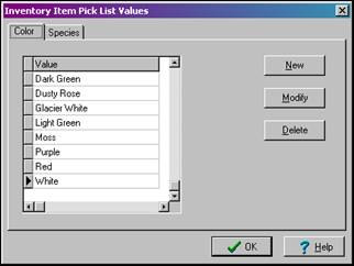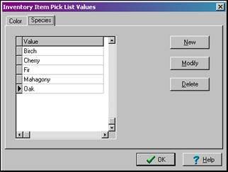 These are the labels you will see on the tabs under the Define | ShopPAK Options | Misc | User Defined Pick Box Values screen. In the image above, we have defined 2 labels, Color and Species.