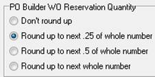 One of the functions of PO Builder is placing reservations against stock items. Tell ShopPAK how you want to handle the reservation quantity. Four choices are available: