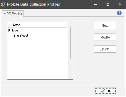ShopPAK Mobile ships with two sample mobile profiles: 'Live' and 'Time Sheet'. Use these as templates to get started. As you'll discover, each sample profile represents the different collection modes ShopPAK Mobile provides.