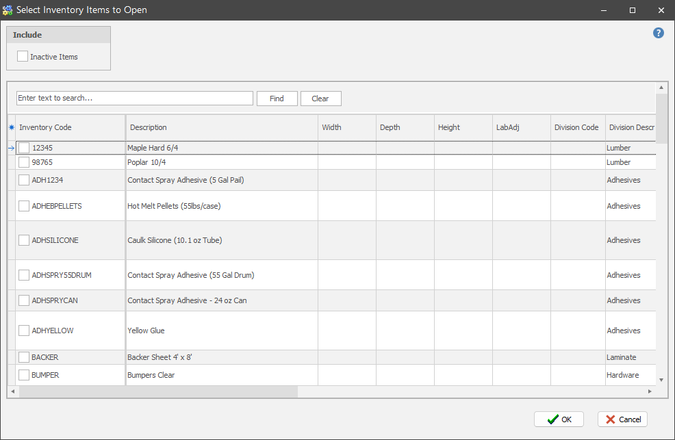 5. Select one or more inventory items you wish to open by clicking a check in the box.