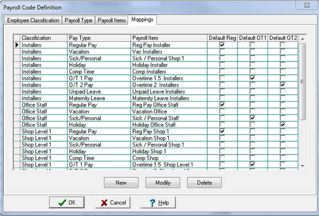 Select Define | Payroll Codes from the ShopPAK menu and then click the ‘Mappings’ tab.