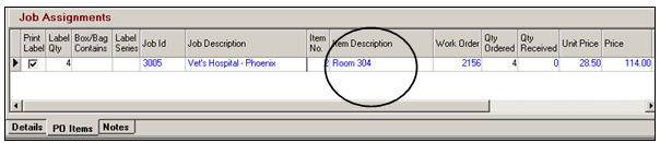 6. When you return to the PO Items tab, you’ll see the Job and/or Job Item you selected down in the Job Assignment grid.