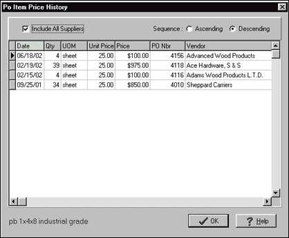 TIP: ShopPAK uses the PO Item description when it builds the Price History list. Thus, you need to be consistent with naming your PO Item descriptions. It is highly recommended that you copy from the ProjectPAK Library or ShopPAK Inventory to ensure naming consistency so you get an accurate price history over time.
