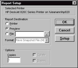 Note: You’ll see the “Report Setup” dialog box appear more than once if you are generating multiple copies of an invoice. Hit cancel to bypass previewing a document copy.