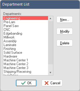 Use the “New”, “Modify”, and “Delete” buttons to manage department values. Each department name can be up to 22 characters in length.