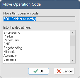 Clicking the “Move” button to move an operation that is currently associated with one department to another department.