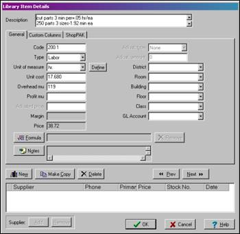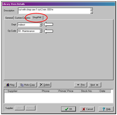 You should add department and operation codes to labor-oriented line items in the Library / Price Book. ProjectPAK automatically copies the proper department and operation code into an estimate or assembly when building an estimate or assembly from library items.
