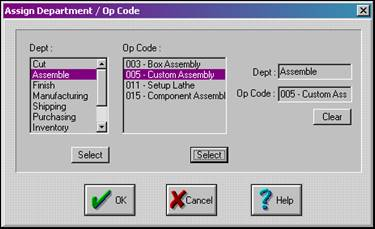 Make sure you’ve first selected a department. Click the op code you wish to assign with your mouse and click the Op Code Select button. The value selected will appear in the Op Code selection box.