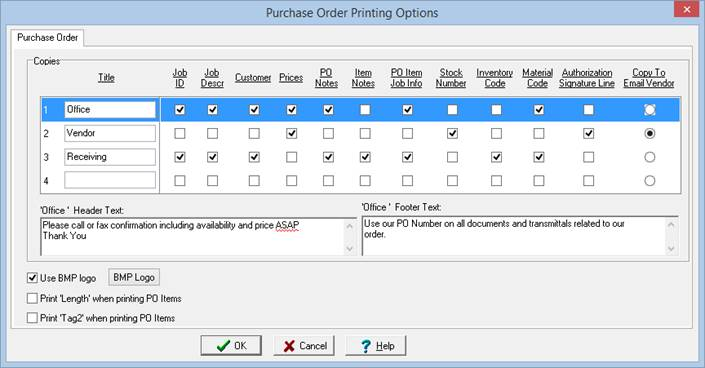 Note: See “Setup and Options” for instructions on setting Purchase Order default document printing options.