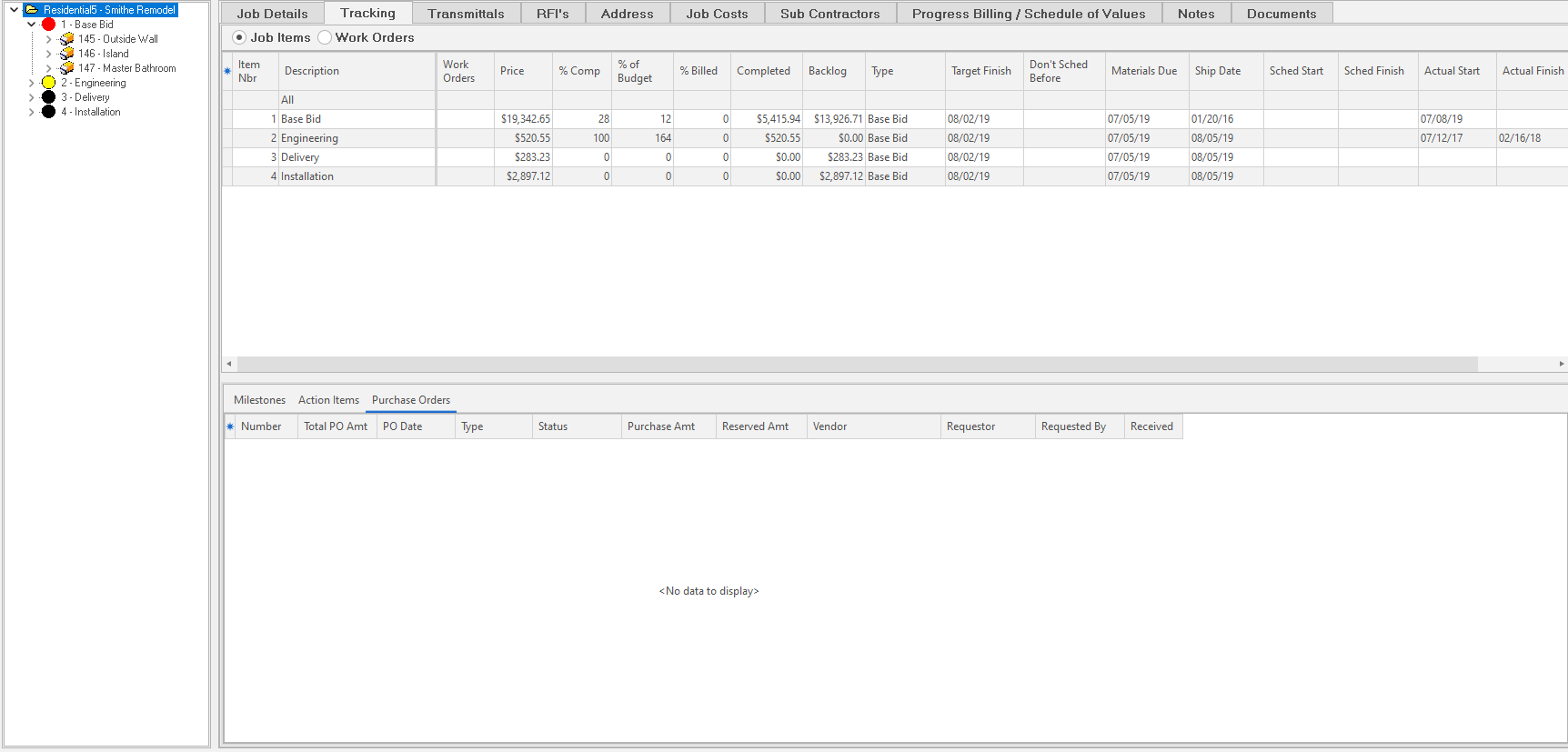 When you click a Job Item or Work Order, ShopPAK displays all related Purchase Orders that reference the selected item when Purchase Order is selected.